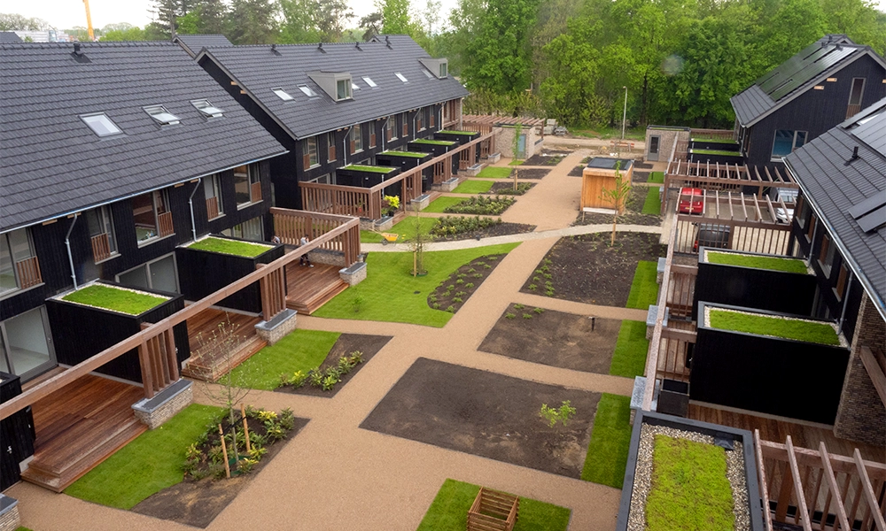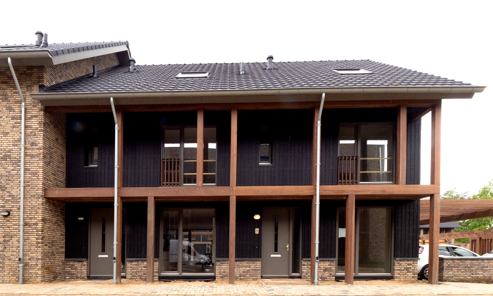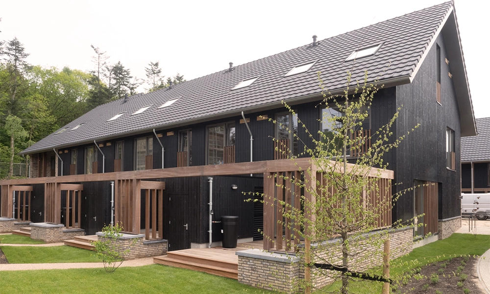 In Ede is project De Veluwse Proeftuin gerealiseerd: een bijzonder project waar natuur, duurzaamheid en een gezonde leefomgeving centraal staan. Voor de bouw van 148 woningen is gekozen voor onze biobased gevelbekleding Vuré Noir, waarmee actief wordt bijgedragen aan het CO₂-neutrale karakter van de wijk.
