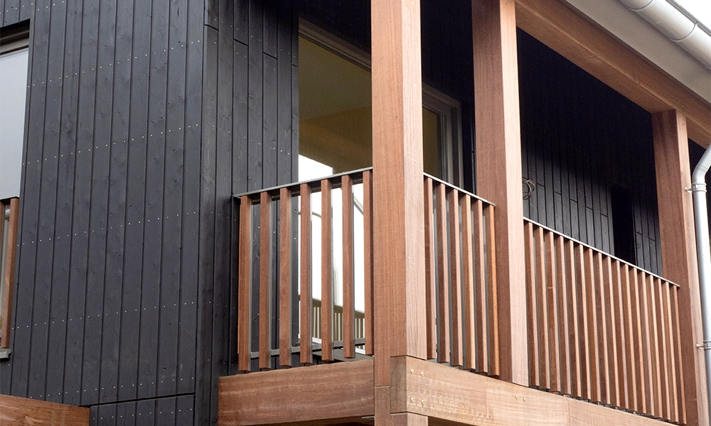 Het Vuré Noir is uitgevoerd in een zwarte kleur en voorzien van een brandvertragende afwerking, zodat het voldoet aan de geldende brandklasse-eisen. Dankzij de thermische modificatie is dit hout bovendien uitstekend bestand tegen weersinvloeden en daarmee zeer geschikt voor toepassing aan de gevel.
