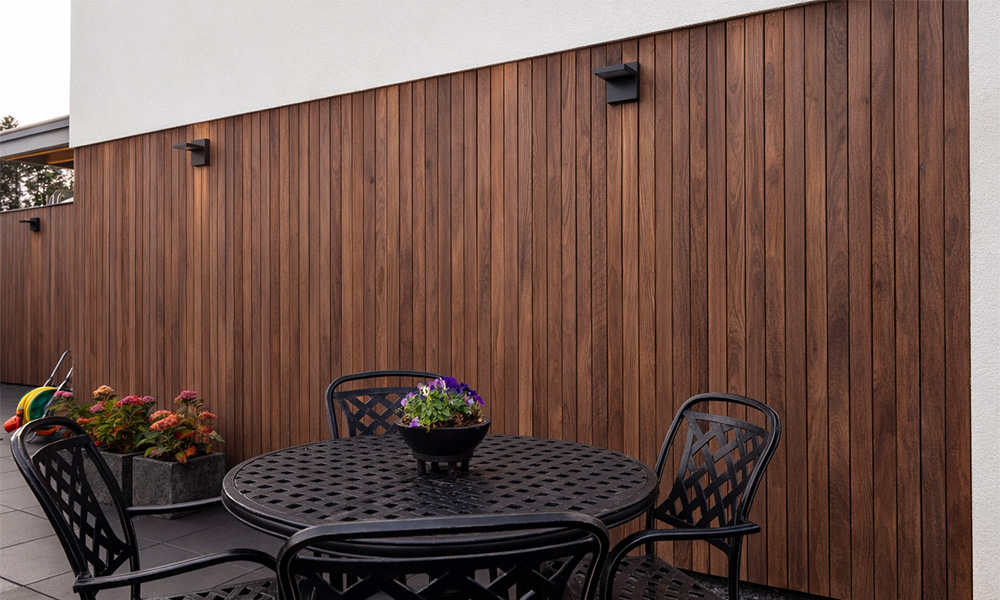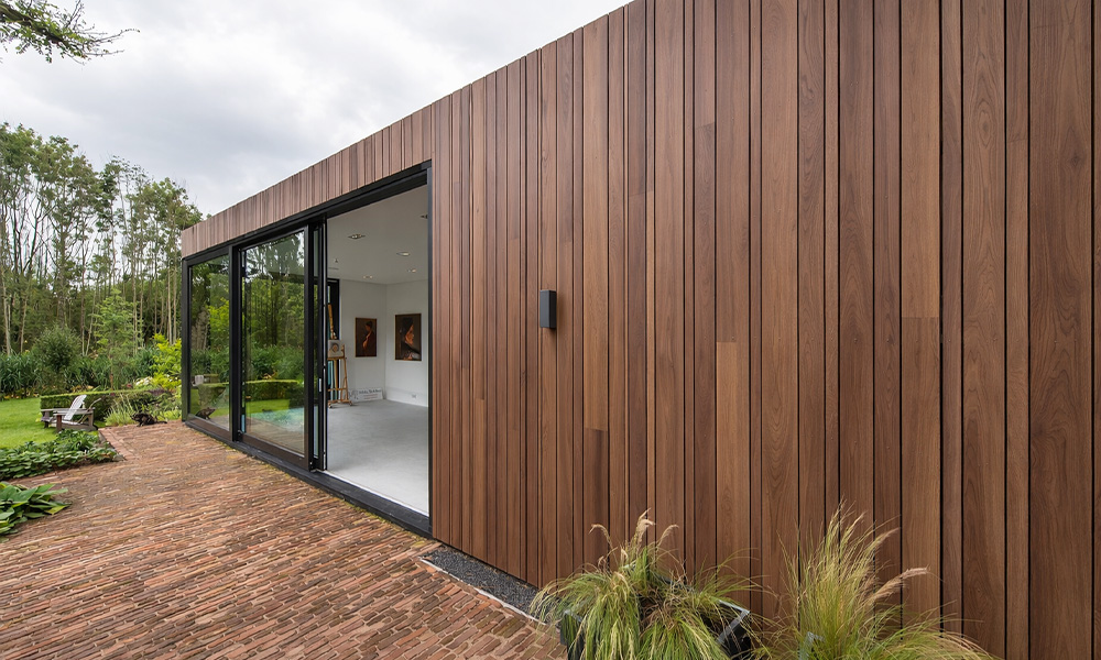 Daarnaast leent Essé Noir® zich uitstekend voor tuin- en erfafscheidingen die jarenlang mooi moeten blijven, evenals voor architectonisch maatwerk waarbij unieke vormen, detailleringen of combinaties van materialen gewenst zijn. Omdat het hout ook in langere lengtes prachtig recht en vormvast blijft, ontstaat altijd een uniform en stijlvol eindresultaat, zowel bij kleine residentiële toepassingen als bij grootschalige projectarchitectuur.