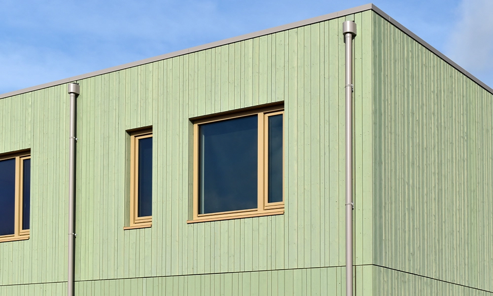 Voor meerdere woningblokken is gekozen voor Vuré Noir gevelbekleding in twee kleurvarianten – groen en grijs. Dit zorgt voor een gevarieerd en natuurlijk straatbeeld dat perfect aansluit bij het groene karakter van de wijk.
